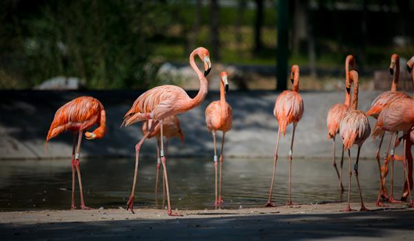 習(xí)性:火烈鳥(niǎo)棲息于人跡罕至的寬闊淺水域。常結(jié)成數(shù)幾萬(wàn)至幾十萬(wàn)只的大群一起生活,在淺灘用蘆葦、雜草、泥灰營(yíng)造圓錐形巢穴。性機(jī)警、溫和,善游泳,但很少到深水域,飛行慢而平穩(wěn)。以水中甲殼類、軟體動(dòng)物、魚(yú)、水生昆蟲(chóng)等為食。