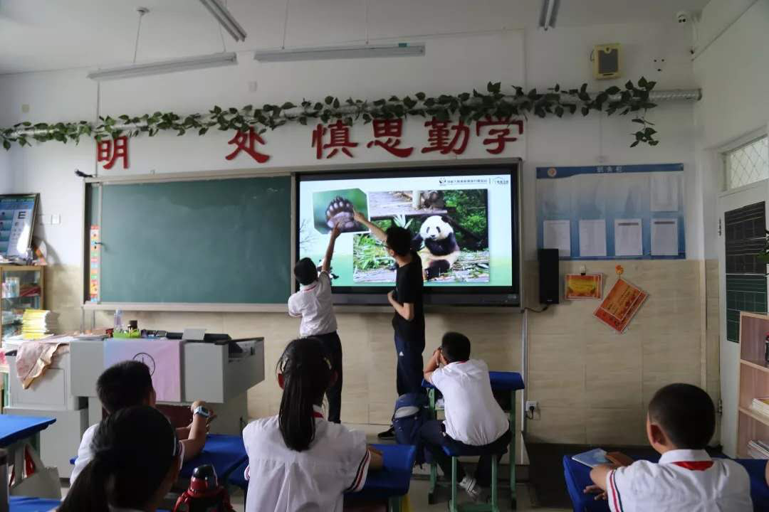 5月31日,科普老師們走進東勝區(qū)第十二小學,為孩子們帶來了精心準備的大熊貓知識。時長90分鐘的科普講堂精彩紛呈,老師們跟大家一起分享與大熊貓相關的有趣故事,將大熊貓奇特的手掌標本、熊貓頭骨、熊貓幼體的模型帶進學校,通過標本展示、視頻播放、課件講解等方式,生動有趣的進行了詳細的講解,讓同學們多方面的認識了國寶大熊貓。觀察熊貓新生幼仔模型、觀賞視頻以及熊貓知識搶答等互動環(huán)節(jié),讓同學們對大熊貓有了更直觀、全面和深刻的認識,課堂氛圍十分融洽,大家?guī)е笾?,開啟了十萬個為什么的模式,基地科普教員鼓勵同學們積極分享如何改變日常生活方式來保護大熊貓及其他野生動植物。