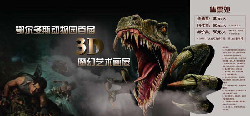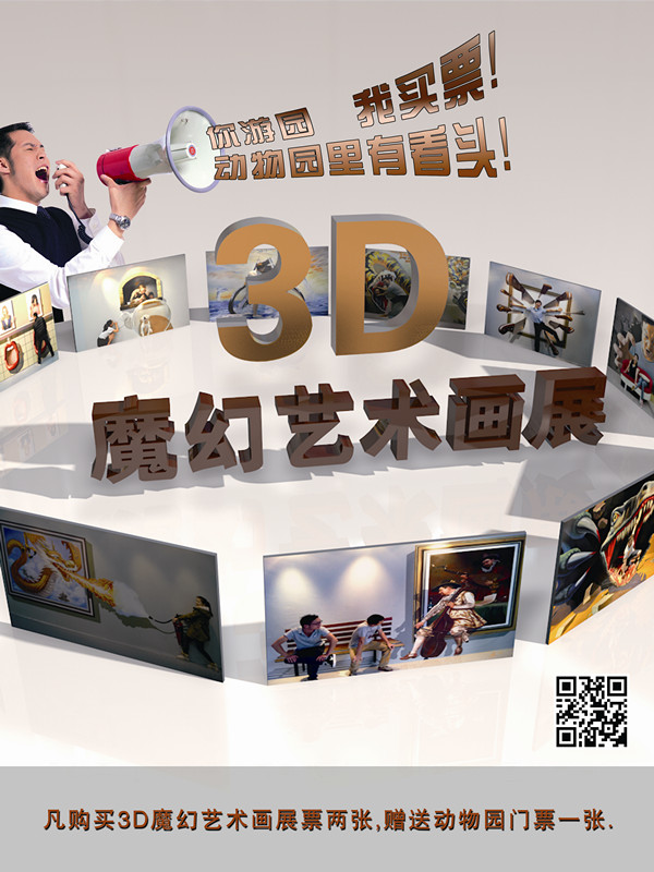 3D畫展是一種新穎的互動(dòng)性展覽,不僅可以看,還可以玩。進(jìn)入展區(qū),出現(xiàn)真人和畫面融為一體的奇特效果,這是一個(gè)老少皆宜的展覽,讓您真正體驗(yàn)到 “拉”大象鼻子、與長(zhǎng)頸鹿“親吻”,拿起魚竿釣兇猛的鱷魚,與偉人“握手”,與外星人 “交手”,牽著恐龍走,臥坐鯊魚嘴等等現(xiàn)實(shí)生活很難實(shí)現(xiàn)的猶如真實(shí)感受。3D魔幻藝術(shù)最大優(yōu)點(diǎn)在于面向大眾,追求最富有樂(lè)趣的互動(dòng)性,可以說(shuō)是最有親和力的一種藝術(shù)展覽形式。無(wú)論是智力開(kāi)發(fā)期的兒童、還是熱戀中情侶,亦或是家庭,都有不得不來(lái)的理由。只要半小時(shí)就可以玩到high!現(xiàn)在體驗(yàn),還可以享受“體驗(yàn)3D畫展送動(dòng)物園門票”的優(yōu)惠活動(dòng)。所以,不管你是從哪里來(lái)的朋友,只要來(lái)一次深刻的3D魔幻體驗(yàn),你就變成這里的主人。趕快行動(dòng)吧,不要忘了帶著您身邊的朋友。
