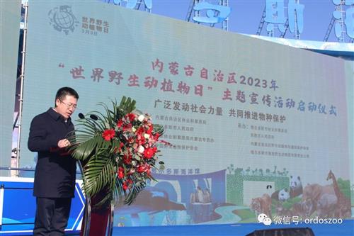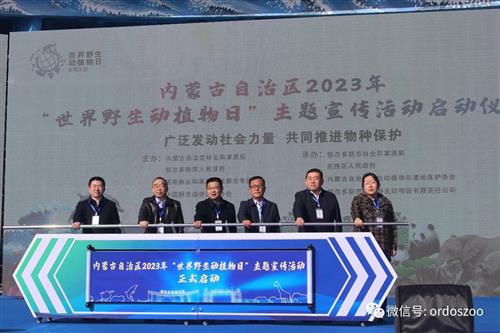 為進(jìn)一步推動(dòng)全民參與野生動(dòng)植物保護(hù),增強(qiáng)廣大群眾保護(hù)野生動(dòng)植物的意識(shí),建設(shè)美麗家園,內(nèi)蒙古自治區(qū)2023年“世界野生動(dòng)植物日”主題宣傳活動(dòng)啟動(dòng)儀式于3月3日由內(nèi)蒙古自治區(qū)林業(yè)和草原局、鄂爾多斯市人民政府、國(guó)家林業(yè)和草原局內(nèi)蒙古專(zhuān)員辦、中國(guó)野生動(dòng)物保護(hù)協(xié)會(huì)聯(lián)合主辦,由鄂爾多斯市林業(yè)和草原局、東勝區(qū)人民政府、內(nèi)蒙古自治區(qū)野生動(dòng)植物與濕地保護(hù)協(xié)會(huì)、鄂爾多斯市隆勝野生動(dòng)物園有限責(zé)任公司承辦,在鄂爾多斯野生動(dòng)物園舉行。
