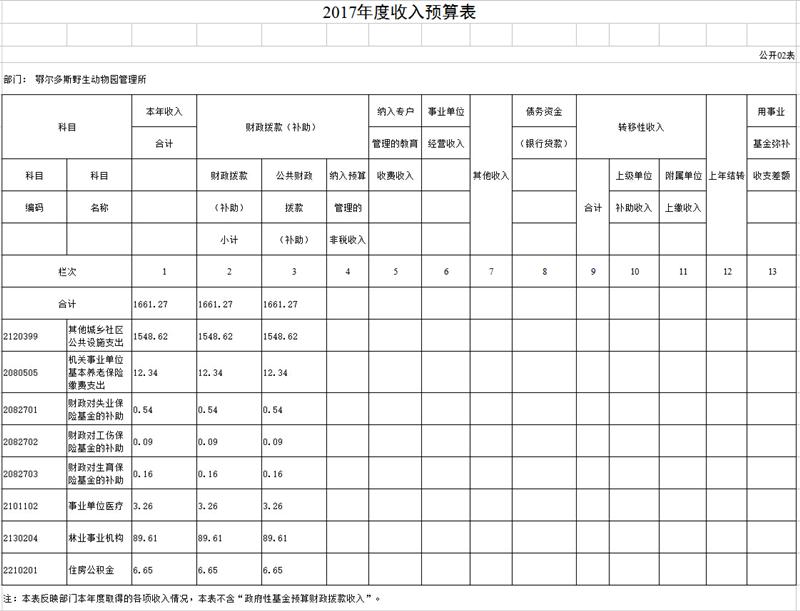 2017年度收入預(yù)算表