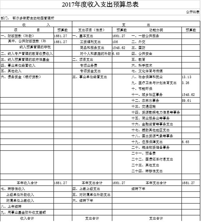 2017年度收入支出預(yù)算總表