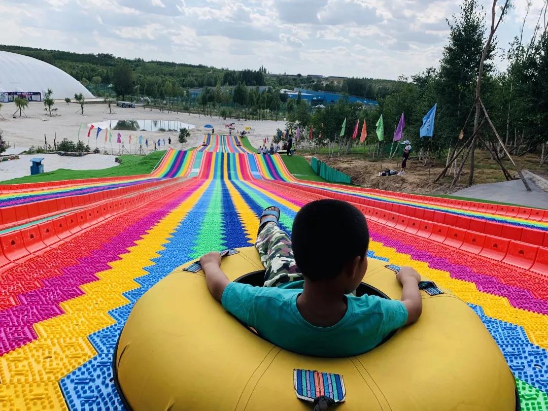 彩虹滑道是一項(xiàng)新興的運(yùn)動(dòng),在一個(gè)高低起伏的山坡,坐彩虹橡皮圈體驗(yàn)擁抱自然的快樂。彩虹滑行運(yùn)動(dòng)符合新時(shí)代環(huán)保的理念,能夠讓大家在炎炎夏日獲得不一樣的清涼體驗(yàn)。