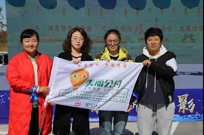 活動(dòng)現(xiàn)場(chǎng)鄂爾多斯志愿者服務(wù)隊(duì)為現(xiàn)場(chǎng)每位游客右手系上了“藍(lán)絲帶”這是無(wú)言的愛(ài)心傳遞更是守衛(wèi)美好家園的無(wú)聲象征