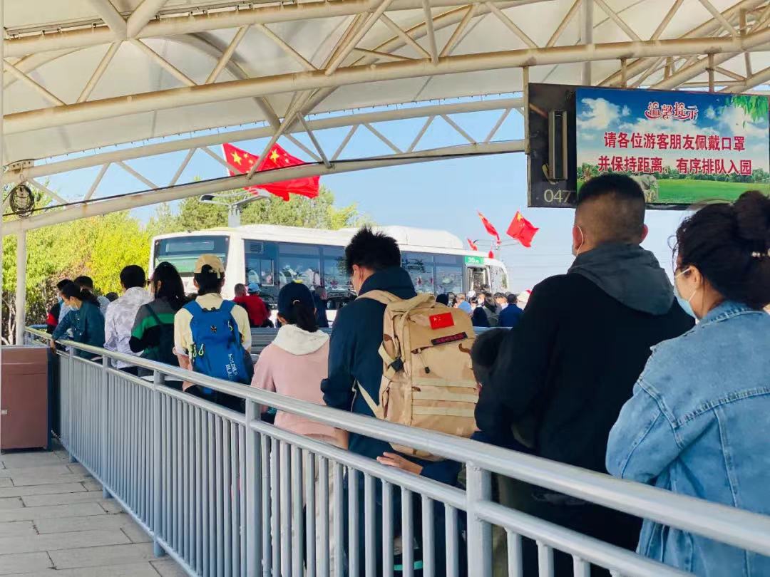 天氣炎熱,在停車場(chǎng)入口,來自包頭、呼市等地的車輛逐漸增多,但并未出現(xiàn)插隊(duì)入園、鳴喇叭催促等現(xiàn)象。據(jù)介紹,面對(duì)客流壓力,該景區(qū)嚴(yán)格落實(shí)“限量、預(yù)約、錯(cuò)峰”的要求,每日限輛車進(jìn)入園區(qū),充分做好防疫措施。