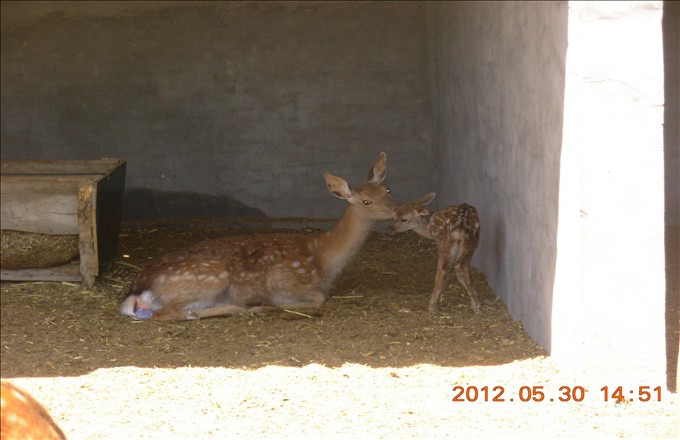 梅花鹿媽媽愛撫自己寶寶的瞬間