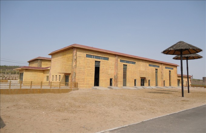 長頸鹿館:位于非洲區(qū)的靠南地,總建筑面積2444平方米,采用鋼筋混凝土框架結(jié)構(gòu),混凝土砌塊圍護墻體,仿非洲巖壁GRC外立面裝修。動物圈舍一側(cè)與室外場地相通,一側(cè)設(shè)置落地安全玻璃與游客大廳相連,便于游客觀賞。室外沿動物活動場地設(shè)置通道供游人觀賞。